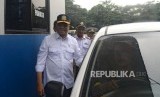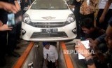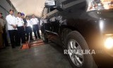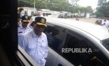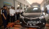 Menteri Perhubungan Budi Karya Sumadi saat meninjau aktifitas uji KIR gratis di Unit Pelayanan Teknis Daerah Pengujian Kendaraan Bermotor (UPTD PKB) Dinas Perhubungan Kota Tangerang, Banten, Selasa (6/3). (FOTO : Republika/Prayogi)