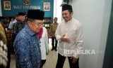 Wakil Presiden RI Jusuf Kalla (kiri) berjalan usai melakukan pertemuan di Kantor MUI, Jakarta, Selasa (6/3). (FOTO : Republika/Putra M. Akbar)