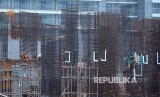 Pekerja mengerjakan pembangunan apartemen di Jakarta, Rabu (7/3). Menurut riset Jones Lang LaSalle (JLL), selama 2015 hingga semester 2017, penjualan tidak sesuai ekspektasi. Secara kumulatif, dari total 138.000 unit apartemen eksisting, terserap pasar 63 persen atau 58.000 unit. (FOTO : Wihdan Hidayat/Republika)