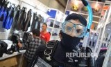 Pengunjung mengamati alat selam pada pameran Deep & Extreme di Jakarta Convention Center, Jakarta, Kamis (8/3). Pameran wisata selam dan petualangan yang menampilkan berbagai produk dan paket destinasi petualangan outdoor darat dan laut tersebut diikuti lebih dari 100 peserta, berlangsung hingga 11 Maret mendatang. (FOTO : Wahyu Putro/Antara)