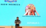 Wakil Presiden Jusuf Kalla memberikan sambutan pada acara Jakarta Food Security Summit-4 di Jakarta Convention Center, Jakarta, Kamis (8/3). Jakarta Food Security Summit-4 yang diselenggarakan oleh Kamar Dagang dan Industri (KADIN) Indonesia tersebut bertemakan (FOTO : Putra M Akbar)