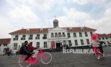 Pengunjung bermain sepeda di Kawasan Taman Fatahillah, Kota Tua, Jakarta, Kamis (8/3). (FOTO : Republika/Mahmud Muhyidin)
