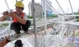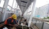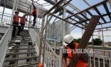 REPUBLIKA.CO.ID, JAKARTA -- Pekerja menyelesaikan pembangunan Halte Busway Transjakarta BNN di kawasan Cawang, Jakarta, Jumat (9/3).
