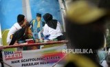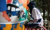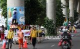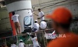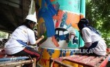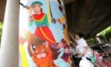 REPUBLIKA.CO.ID, JAKARTA -- Sejumlah pelajar menggambar mural di tiang Jalan Layang Non Tol (JLNT) Antarasi, Jakarta, Ahad (11/3).
