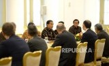 Terima Delegasi AIIB. Presiden Joko Widodo (tengah kiri) didampingi jajaran menteri menerima delegasi Asian Infrastructure Investment Bank (AIIB) di Istana Kepresidenan Bogor, Jawa Barat, Senin (12/3). (FOTO : Republika/ Wihdan)