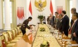 Terima Delegasi AIIB. Presiden Joko Widodo (kiri) menerima delegasi Asian Infrastructure Investment Bank (AIIB) di Istana Kepresidenan Bogor, Jawa Barat, Senin (12/3). (FOTO : Republika/ Wihdan)