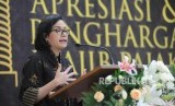 Menteri Keuangan Sri Mulyani memberikan sambutan dalam acara Apresiasi dan Penghargaan Wajib Pajak Kanwil DJP pajak besar tahun 2018 di lingkungan Kanwil DJP Wajib Pajak Besar, Jakarta, Selasa (13/3). (FOTO : Republika/Iman Firmansyah)