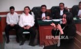 REPUBLIKA.CO.ID, JAKARTA -- Artis Veranita Yudhasoka Shu memberikan keterangan saat menjalani sidang lanjutan sebagai saksi dalam kasus penipuan dan penggelapan oleh agen perjalanan umrah First Travel di Pengadilan Negeri Depok, Jawa Barat, Rabu (14/3).