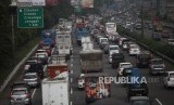 REPUBLIKA.CO.ID, JAKARTA -- Antrean kendaraan saat melintas di ruas Jalan Tol Jagorawi, Kawasan Cibubur, Jakarta Timur, Rabu (14/3).