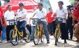 (dari kiri) Direktur Planning & Transformation Telkomsel Edward Ying, Direktur Utama Telkomsel Ririek Adriansyah, dan Rektor Universitas Indonesia Muhammad Anis saat melakukan uji coba inovasi solusi bike sharing berbasis teknologi Narrowband Internet of Things (NB-IoT) di Universitas Indonesia, Depok, Rabu (14/3). Telkomsel mempelopori komersialisasi teknologi NB-IoT di Indonesia, dalam upaya mengakselerasi terbentuknya ekosistem IoT di Indonesia. (FOTO : Dok Telkomsel)
