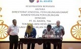 Persdir XL Axiata, Dian Siswarini dan Dirjen Hubdar Kemenhub Budi Setiyadi menandatangani nota MoU XL Axiata - Kemenhub disaksikan Menteri Perhubungan Budi Karya Sumadi (kiri belakang ) di Jakarta, Rabu (14/3). Kedua pihak bekerja sama pemanfaatan teknologi dan saluran digital dalam program sosialisasi dan edukasi keselamatan berkendara. (FOTO : Dok XL)