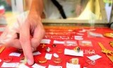 Target Laba Pegadaian. Perhiasan emas lelangan dipamerkan di salah satu booth Pegadaian, Jakarta, Ahad (18/3). (FOTO : Republika/ Wihdan)