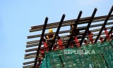 Hutang RI. Pekerja mengerjakan tiang pancang LRT di Kawasan Kuningan, Jakarta, Ahad (18/3). (FOTO : Republika/ Wihdan)