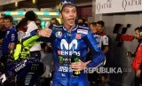 Valentino Rossi dari tim Movistar Yamaha menempati posisi ketiga pada MotoGP Qatar di Losail International Circuit, Doha. (FOTO : Noushad Thekkail/EPA-EFE)