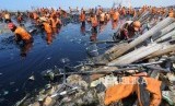 Memasuki hari ketiga, sampah yang telah dibersihkan di lokasi tersebut sudah mencapai 34 ton atau sekitar 50 persen dari total sampah yang ada.
