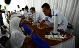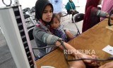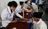 Pemeriksaan kesehatan gratis bagi warga sekitar di sela acara Topping Off RSU Syubbanul Wathon di Tegalrejo, Magelang, Jawa Tengah, Selasa (20/3). (FOTO : Republika/Yogi Ardhi)