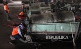 Sejumlah pekerja mengolah sampah pasar dengan fasilitas mesin pengomposan di Tempat Pengelolaan Sampah Terpadu (TPST) Bantargebang, Bekasi, Jawa Barat, Rabu (21/3). (FOTO : Republika/Mahmud Muhyidin)