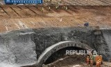 Pekerja menyelesaikan konstruksi terowongan Walini proyek kereta cepat Jakarta-Bandung di Cikalong Wetan, Kabupaten Bandung Barat, Jawa Barat, Rabu (21/3). (FOTO : Antara/M Agung Rajasa)