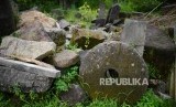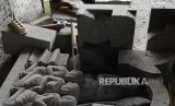Bahan baku batu mentah dan setengah jadi tergeletak di sentra kerajinan batu Linang Sayang Muntilan, Kabupaten Magelang, Jawa Tengah, Senin (19/3). (FOTO : Republika/Yogi Ardhi)