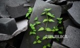Tumbuhan liar menjalar di antara bongkahan batu yang tidak terpakai di sentra kerajinan batu Linang Sayang Muntilan, Kabupaten Magelang, Jawa Tengah, Senin (19/3). (FOTO : Republika/Yogi Ardhi)
