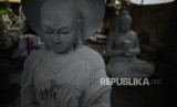 Patung Buddha tanpa pahatan detail rambut di sentra kerajinan batu Linang Sayang Muntilan, Kabupaten Magelang, Jawa Tengah, Senin (19/3). (FOTO : Republika/Yogi Ardhi)