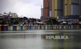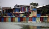 REPUBLIKA.CO.ID, JAKARTA -- Warga memancing didepan rumah dan ”Sheet pile" danau Sunter yang sudah dicat warna warni di Jalan Sunter Jaya, Jakarta, Kamis (22/3).