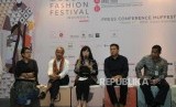 Perwakilan dari Badan Ekonomi Kreatif Popy Savitri bersama National Chairman of Indonesian Fashion Chamber Ali Charisma, Perwakilan dari Kementerian Perindustrian Gati Wibawaningsih, Presiden Direktur Dyandra Promosindo Daswar Marpaung dan (dari kiri) memaparkan pendapat saat Konferensi Pers Muslim Fashion Festival di Aston Kuningan Suites, Jakarta, Kamis (22/3). (FOTO : Republika/Putra M. Akbar)