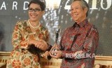 Direktur BCA Suwignyo Budiman (kanan) menerima penghargaan kategori Best Company - Enterprise Achiever yang diserahkan Pemimpin Redaksi Women’s Obsession Elly Simanjuntak (kiri) dalam ajang Obsession Awards 2018 di Jakarta, Kamis (22/3). (FOTO : Audy Alwi/Antara)