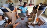 Pekerja menyelesaikan pembuatan kaki palsu di Yayasan Peduli Tuna Daksa, Sunter, Jakarta, Kamis (22/3). Dalam sehari yayasan tersebut mampu menyelesaikan 20 kaki palsu yang dijual dengan harga Rp1.750.000 untuk penyandang tuna daksa yang kurang mampu. (FOTO : Rivan Awal Lingga/Antara )