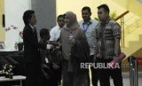 Anggota DPRD Kota Malang periode 2014-2019, Heri Pudji Utami mengenakan rompi orange paska diperiksa di Komisi Pemberantasan Korupsi, Jakarta, Selasa (27/3). (FOTO : Republika/Iman Firmansyah)