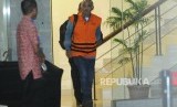 Anggota DPRD Kota Malang periode 2014-2019, Hery Subiantono mengenakan rompi orange paska diperiksa di Komisi Pemberantasan Korupsi, Jakarta, Selasa (27/3). (FOTO : Republika/Iman Firmansyah)