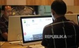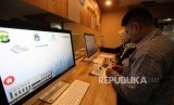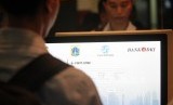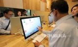 Warga mengisi form pendaftaran untuk membayar pajak kendaraan dengan menggunakan Samsat Digital e-Samsat di Kantor Bersama Pelayanan Satu Atap Polda Metro Jaya, Jakarta, Rabu (28/3). (FOTO : Republika/Mahmud Muhyidin)