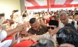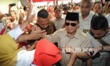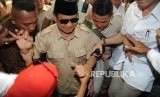 REPUBLIKA.CO.ID, DEPOK -- Ketua Umum Partai Gerindra Prabowo Subianto menyampaikan pidato politik di Depok, Jawa Barat,Ahad (1/4).