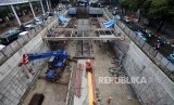 REPUBLIKA.CO.ID, JAKARTA -- Suasana kondisi pembangunan proyek Underpass Mampang Kuningan masih dalam penyelesaian di Jakarta, Senin (2/4).