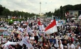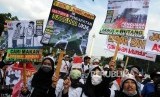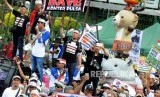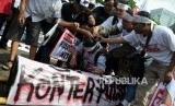 REPUBLIKA.CO.ID, JAKARTA -- Sejumlah massa yang tergabung dalam Kesatuan Niaga Cellular Indonesia (KNCI) melakukan aksi unjuk rasa di depan Istana Merdeka, Jakarta, Senin (2/4).