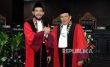 Ketua dan Wakil Ketua Mahkamah Konstitusi (MK) Terpilih Anwar Usman (kiri) dan Aswanto (kanan) berjabat tangan usai mengucap sumpah jabatan di Gedung MK, Jakarta, Senin (2/4). (FOTO : Republika/Putra M. Akbar)