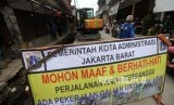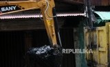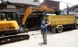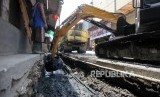 REPUBLIKA.CO.ID, JAKARTA -- Pekerja mengoperasikan alat berat untuk mengeruk lumpur disaluran air di Kawasan Jembatan Besi, Jakarta, Selasa (3/4).