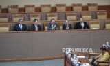 Penetapan Gubernur Bank Indonesia. Anggota DPR RI mengikuti penetapan Gubernur Bank Indonesia saat Rapat Paripurna di Komplek Parlemen Senayan, Jakarta, Selasa (3/4). (FOTO : Republika/ Wihdan)