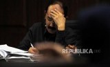 REPUBLIKA.CO.ID, JAKARTA -- Terdakwa kasus merintangi penyidikan kasus korupsi KTP elektronik Fredrich Yunadi saat menjalani sidang lanjutan di Pengadilan Tipikor, Jakarta, Kamis (5/4).