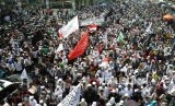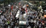 REPUBLIKA.CO.ID, JAKARTA -- Umat Muslim dari berbagai ormas melakukan aksi unjuk rasa menuntut tangkap dan penjarakan Sukmawati Soekarnoputri yang dilakukan di depan kantor Bareskrim Mabes Polri, Jakarta, Jumat (6/4).