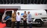 Ketua Umum PMI Jusuf Kalla (kedua kiri) berbincang bersama Presdir PT Astra International Tbk Prijono Sugiarto (kedua kanan) disaksikan (Plh) Ketua Umum PMI Ginandjar Kartasasmita (kiri) dan Chief of CSR & Security Astra International Pongki Pamungkas (kanan) di Jakarta (6/4). Astra Internasional menyumbangkan 10 truk tanki air untuk PMI sebagai bagian dari program kontribusi sosial berkelanjutan Astra di bidang kesehatan, Astra Untuk Indonesia Sehat. (FOTO : Dok Astra)
