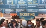 Pengunjung mencari info pemesanan tiket di salah satu stan pada Garuda Indonesia Travel Fair 2018 di Jakarta Convention Center, Senayan, Jakarta, Jumat (6/4). GATF 2018 menargetkan total transaksi sebesar Rp 285 miliar dan 80.000 pengunjung selama tiga hari pameran. (FOTO : Antara)