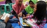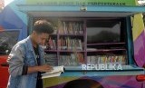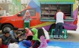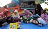 REPUBLIKA.CO.ID, DEPOK -- Anak-anak membaca buku yang dipinjam dari mobil perpustakaan keliling di Grand Depok City, Depok, Jawa Barat, Ahad (8/4).