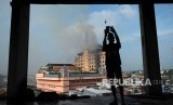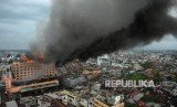 REPUBLIKA.CO.ID, JAMBI -- Asap membumbung tinggi dari Hotel Novita yang terbakar di kawasan padat pertokoan di Jambi, Senin (9/4).