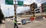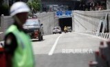 Petugas merlintas dipintu masuk proyek Underpass Matraman Salemba masih dalam proses penyelesaian di Jakarta, Ahad (1/4). (FOTO : Republika/Mahmud Muhyidin)