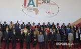 Wapres Jusuf Kalla (tengah) bersama Menko bidang Kemaritiman Luhut Binsar Pandjaitan (kesembilan kanan), Menlu Retno Marsudi (kedelapan kiri), Mendag Enggartiasto Lukita (keenam kiri) berfoto dengan para ketua delegasi negara-negara Afrika dalam pembukaan Forum Indonesia Afrika (IAF) 2018 di Nusa Dua, Bali, Selasa (10/4). (FOTO : Nyoman Budhiana/Antara)