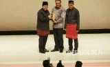 Dirut BRI Suparjarto menerima penghargaan saat Acara penganugerahan Tokoh Perubahan Republika di Djakarta Theater, Jakarta Pusat, Selasa (10/4). (FOTO : Republika/Edwin Dwi Putranto)