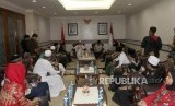 Sekjen PDI Perjuangan Hasto Kristiyanto (kanan) berbincang dengan Iman Besar Masjid Istiqlal Nasaruddin Umar (kiri) saat bersilaturahmi di Masjid Iqtiqlal, Jakarta, Rabu (11/4). (FOTO : Republika/Mahmud Muhyidin)