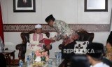 Sekjen PDI Perjuangan Hasto Kristiyanto (kanan) menyerahkan buku tentang Soekarno kepada Iman Besar Masjid Istiqlal Nasaruddin Umar (kiri) saat bersilaturahmi di Masjid Iqtiqlal, Jakarta, Rabu (11/4). (FOTO : Republika/Mahmud Muhyidin)