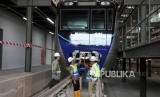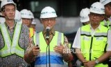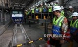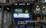 REPUBLIKA.CO.ID, JAKARTA -- Gubernur DKI Jakarta Anies Baswedan bersama Dirut MRT William Sabandar meninjau rangkaian kereta Mass Rapid Transit (MRT) di Depo 1 MRT Lebak Bulus, Jakarta, Kamis (12/4).